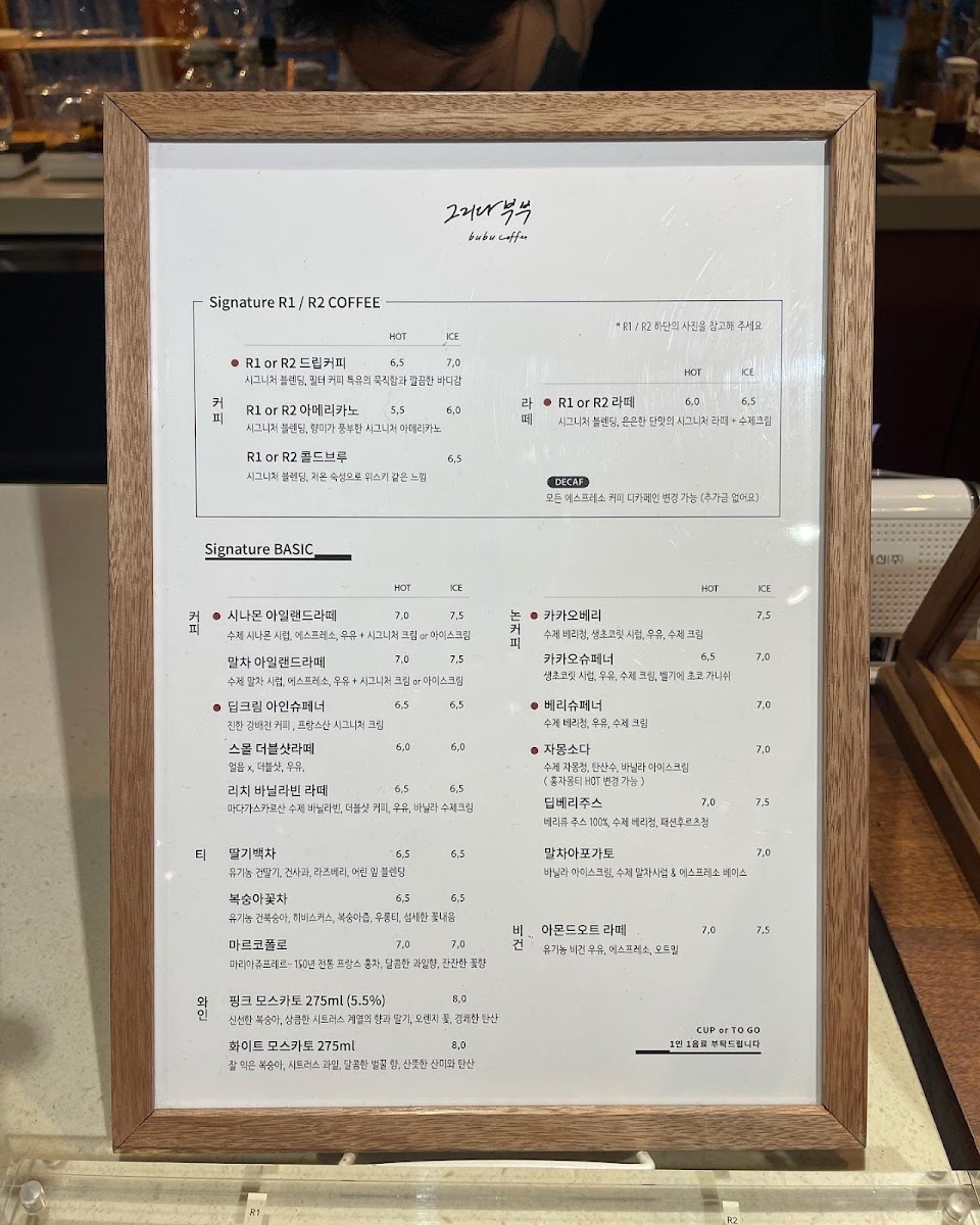 At Coffee Bubu, the menu is a treasure trove for coffee lovers. Their signature latte, the 다라떼, is an absolute must-try, featuring a deep-bodied specialty coffee that marries beautifully with house-made cream crafted from 100% animal products. Priced at just ₩6,000, this drink becomes a sensory experience with its hint of delicate floral aroma. If you're in the mood for something more robust, the signature americano, or 다커피, presents a rich tapestry of flavors that’s both complex and satisfying for ₩5,500.